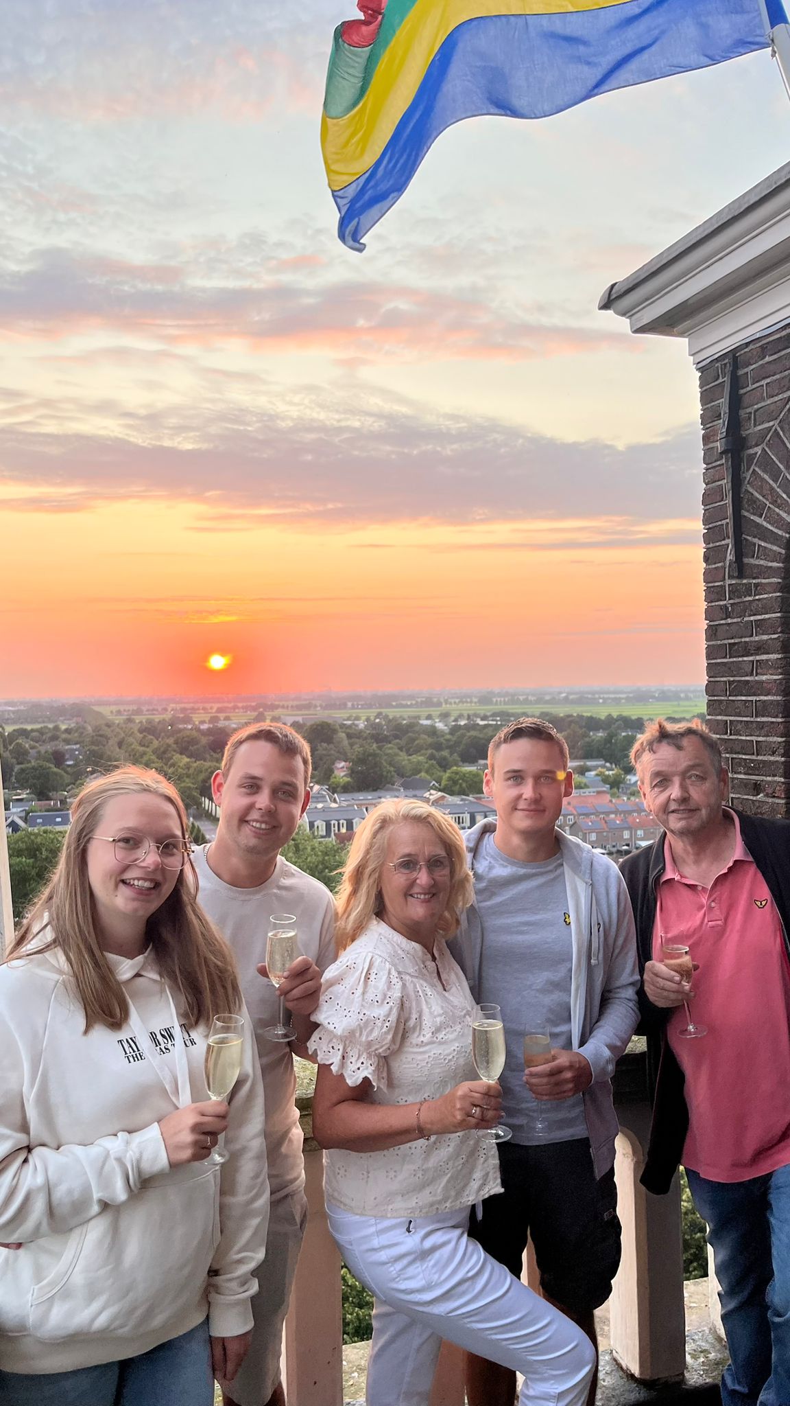 20-jarige Kavel II proost bij Keyserklim Sunset Nieuws by sjaakmartens - 6 augustus 20246 augustus 2024 Ter ere van het 20-jarig jubileum van Kavel II heeft VISIT Beemster de familie Jonk, uitbater van Kavel II, de Keyserklim Sunset cadeau gedaan. Op donderdag 1 augustus was het genieten op de 32 meter hoge trans van de toren van de Keyserkerk. Het uitzicht blijft altijd indrukwekkend en de zonsondergang aanschouwen met een bubbel in de hand maakt het extra feestelijk. Kavel IIDe enthousiaste familie Jonk van Kavel II, BeemSTER vanaf het begin, is op allerlei vlakken van toegevoegde waarde voor De Beemster. Op de 9-holes golfbaan kun je naast het golfen ook nog allerlei andere activiteiten doen zoals laser kleiduifschieten, steenwerpen, footgolf spelen of een golfclinic volgen. Ook leuk om met familie, vrienden of collega’ te doen. Het restaurant met een geweldig terras dat uitkijkt over de banen is van woensdag t/m zondag geopend voor lunch en diner. Daarnaast is het ook heerlijk genieten als je wilt opsteken tijdens een wandel- of fietstocht door De Beemster. En als het goed bevalt, kun je hier langer verblijven in het hotel met 7 luxueus ingerichte kamers. Keyserklim – Sunset & SunriseDoor werkzaamheden aan de kerktoren zal het seizoen van de Keyserklim eerder ten einde komen. De geplande Keyserklim Sunset & Sunrise tijdens de Open Monumentendag halen we daarom naar voren. Op zaterdag 31 augustus kun je om 19.45 uur mee naar boven. Onder het genot van een glas prosecco kun je genieten van de zonsondergang. Ben je meer een vroege vogel? Ga dan mee op zondag 1 september om 06.15 uur naar 32 meter hoogte en geniet met een Beemster sapje van de zonsopgang. Foto’s: Familie Jonk Dit delen: Klik om te delen op X (Wordt in een nieuw venster geopend) X Klik om te delen op Facebook (Wordt in een nieuw venster geopend) Facebook Gerelateerd