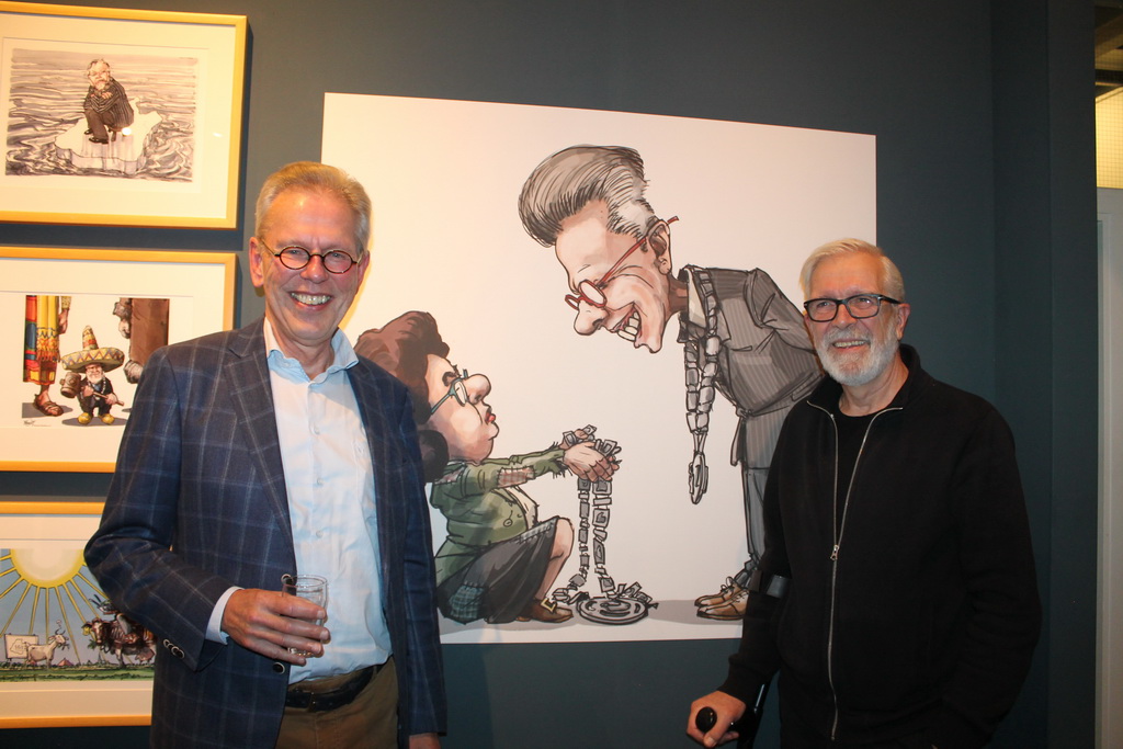Cartoons Frank Muntjewerf in Purmerends Museum Nieuws by sjaakmartens - 26 november 202326 november 2023 Een grotendeels door Frank zelf samengestelde selectie uit zijn meer dan vijfduizend cartoons hangt vanaf heden tot 5 mei in het Purmerends Museum op de Kaasmarkt in Purmerend. Vrijdagmiddag 24 november werd de expositie geopend door adjunct hoofdredacteur van de Holland Media Combinatie GerBen van ’t Hek. Frank reageerde in de publicaties voorafgaand aan de opening enigszins onderkoeld. Alsof de expositie eerder een last dan een lust was. Aanleiding voor museumdirecteur Moncef Beekhof om hem aan te sporen iets meer enthousiasme aan de dag te leggen. Tijdens zijn openingswoord vertrouwde de cartoonist zijn toehoorders toe dat hij zich oprecht vereerd voelde. De officiële opening werd bijgewoond door familie, vrienden en (ex) collega’s. Daardoor ontstond al snel een gezellige reunieachtige sfeer in de trouwzaal. Onder hen oud leerling van het RSG GerBen van ’t Hek. Die daarvoor vervroegd uit een werkbezoek in Limburg was teruggekomen. Door pech met de auto kwam hij enigszins verlaat binnen. “Als elfjarige kwam ik de eerste les bij jou ook al te laat. Ik kon de juiste locatie van de school niet vinden”. Frank was toen nog tekenleraar en moest al snel constateren dat de kwaliteiten van GerBen elders gezocht moesten worden. Als leraar had Frank zich al maatschappelijk nuttig gemaakt door de grijze buurt op te fleuren met prachtige muurschilderingen. Niet alleen op de school maar ook tegenover wat toen de Miro heette. In de jaren tachtig heeft hij (definitief) de overstap gemaakt naar de krant en daar carrière gemaakt. Want hij maakt nu tekeningen voor alle edities van het Noord Hollands Dagblad. Naast de vele andere opdrachten. Directeur Moncef en GerBen waren eensluidend in hun oordeel: “Altijd maatschappelijk, altijd actueel, nooit vilein”. Veel geportretteerden wilden graag een kopie van zijn tekening in bezit hebben. Sommige bestuurders waren vanuit hun functie meerdere keren onderwerp van een cartoon. “Van Don Bijl had ik wel een geheel eigen expositie kunnen vullen”. Tientallen cartoons zijn op een door Saskia van den Berg prachtig vormgegeven wijze uitgelicht. Een heerlijke terugblik op een rijke regionale geschiedenis. Op de vraag of het niet tijd werd voor een kloek boek, kwam helaas geen eenduidig positieve reactie. Misschien moet die gedachte ook nog even rijpen. Hij verdient het zeker. Geert Dit delen: Klik om te delen op X (Wordt in een nieuw venster geopend) X Klik om te delen op Facebook (Wordt in een nieuw venster geopend) Facebook Gerelateerd