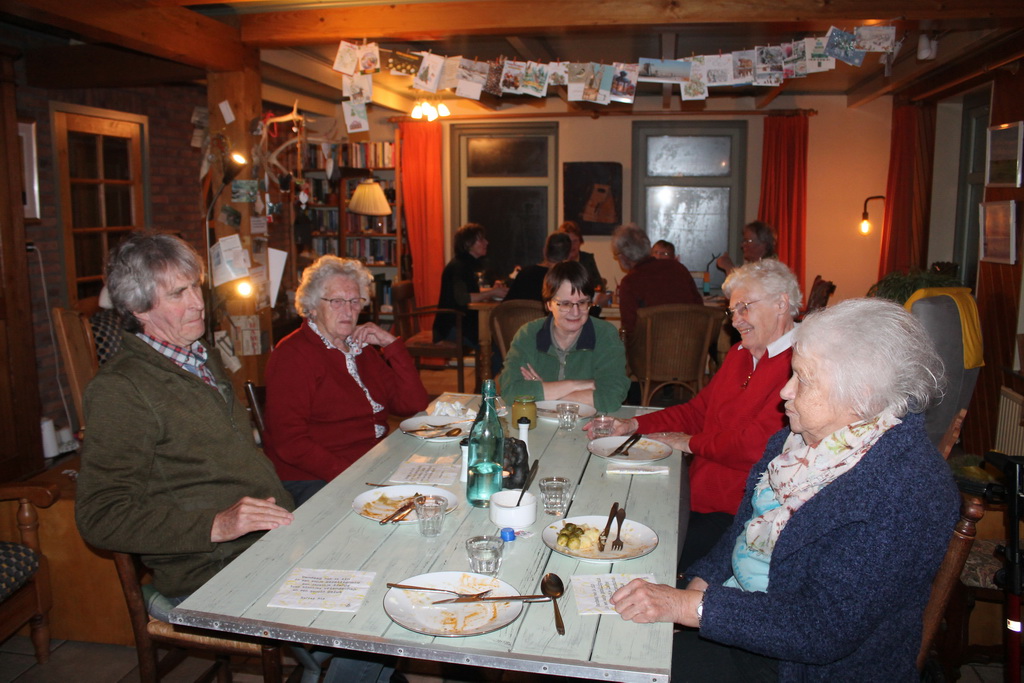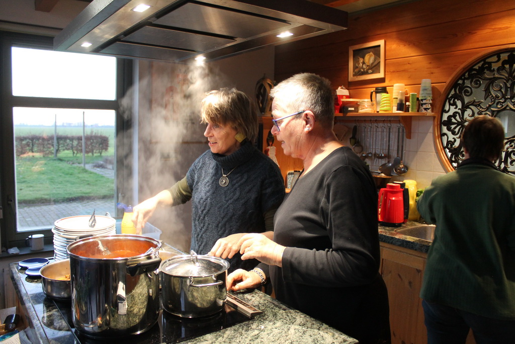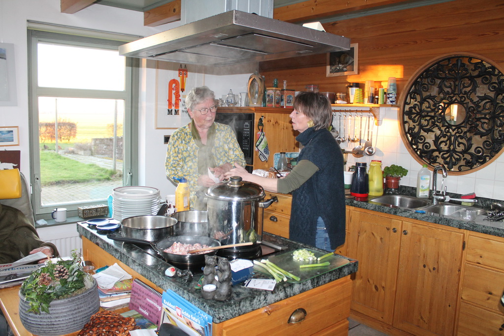 Maal en Verhaal in de Beemster Nieuws by sjaakmartens - 22 februari 202322 februari 2023 Elke eerste dinsdagavond van de maand komt een groep bewoners vanaf vijf uur bij elkaar om samen te eten en naar elkaars verhalen te luisteren. Vandaar ‘maal en verhaal’. Het nuttige (ontmoeting) met het aangename (samen eten) verenigd. Ondergetekende was dinsdagmiddag 7 februari ‘gast aan tafel’. Jisperweg Westbeemster. Het tijdelijk onderkomen (wegens de verbouwing van de Vermaning) van dit initiatief voortkomend uit de doopsgezinde kerk in de Beemster. Maar nadrukkelijk toegankelijk voor alle belangstellenden. Vijf uur. Gastvrouw Alie Kwantes en Corrie Laros, beiden initiatiefnemers van Maal en Verhaal, zijn al druk in de weer in de keuken. Geholpen door drie vroegkomers. Later bieden ook anderen de helpende hand. Vandaag bestaat de hoofdmaaltijd uit spruiten, aardappelen en een speklapje. Altijd seizoensgebonden groentes. Altijd vers en gevarieerd. Dus ook pasta’s of pannenkoeken. Eten wat de pot schaft. Low budget. Duurzaam en kleurrijk. Dat alles maakt dit initiatief ook zo interessant. Schillen en ander organisch materiaal gaat naar de kippen die buiten rondscharrelen. Wat eventueel overblijft wordt aan het eind van de maaltijd verdeeld onder de gasten. Tegen zes uur is iedereen paraat. Drie tafels in de huiskamer annex keuken bieden plaats aan vijftien gasten. Mannen en vrouwen. De vaste kern. Wie onverhoopt een keertje niet kan, belt af. Na de verbouwing hoopt de groep weer terug te keren in de Vermaning op de hoek van de Middenweg/Hobrederweg. Dat biedt ook weer iets meer ruimte voor nieuwkomers. Tijdens het eten komen de verhalen op gang. Alledaagse verhalen. Die fijn zijn om te delen met anderen. Tussen de gangen door is er ruimte voor korte collectieve verhalen. Een opvallende column uit de krant of een overpeinzing. Na afloop stopt een ieder een eigen bijdrage in de pot. De ervaring leert dat dit genoeg is om de kosten te delen en ook nog een potje te creëren voor een goed doel aan het eind van het seizoen. Het afgelopen jaar is dat onder andere de voedselbank geweest. Een toepasselijke bestemming. Wat een mooi initiatief. Ik heb met volle teugen genoten van de warme gastvrijheid en neem me voor om na de verhuizing nog een keertje terug te keren. Goed voorbeeld doet goed volgen. Geert Dit delen: Klik om te delen op X (Wordt in een nieuw venster geopend) X Klik om te delen op Facebook (Wordt in een nieuw venster geopend) Facebook Gerelateerd