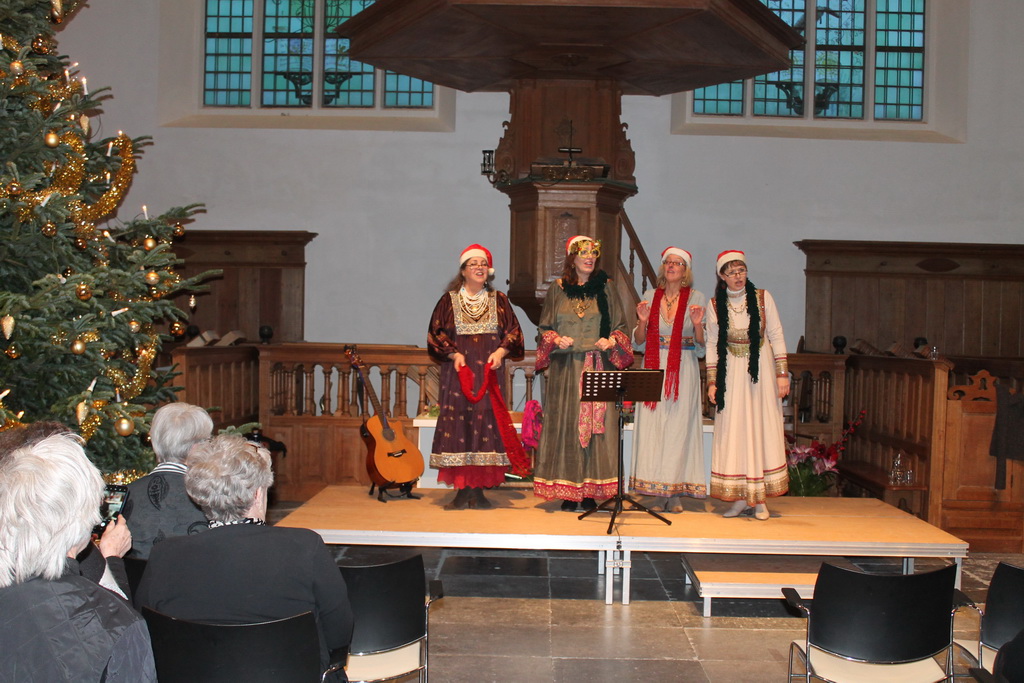 Rusalki Quartet bij Kerstmiddag Keyserkerk Nieuws by sjaakmartens - 17 december 202317 december 2023 Het team Vriendschappelijk Huisbezoek van de Samenwerkende kerken Beemster organiseert jaarlijks een tweetal Kerstmiddagen voor ‘55 plus’. Het Amsterdamse a-capella quartet Rosalki zorgde tijdens de 49e kerstmiddag op vrijdag 15 december voor een internationaal tintje aan het gezellige samenzijn. Ruim zeventig deelnemers genoten van de uitstekend verzorgde middag. Naast samenzang van bekende kerstliederen begeleid op het orgel door organist Jan Pronk, kon genoten worden van internationale (kerst) liederen uit vooral de Balkan. Meerstemmig gezongen. Elk lied werd vooraf bondig toegelicht, zodat de mensen het verhaal enigszins konden volgen. Dit optreden gaf extra cachet aan het gekozen thema van dit jaar: Kerst zonder grenzen. Uiteraard mocht de vertelling uit het Lucas Evangelie door Zr Corrie Laros niet ontbreken en verhaalde Marie Schroevers over de bijzondere (kerst) ontmoeting van ‘Elly en Joop’ met de Eritrese straatkrantverkoper Manuel. Met een bijzondere wending in het verhaal. Gastheer Nico Schroevers loodste de bezoekers op aangename wijze door het programma. De gastvrouwen en –heer stonden gedurende het programma klaar om een ieder regelmatig te voorzien van een versnapering. Minder zichtbaar was het ‘keukenteam’ welke er voor zorgde dat alles op tijd uitgeserveerd kon worden. Kortom: een top middag met een top organisatie. Geert Dit delen: Klik om te delen op X (Wordt in een nieuw venster geopend) X Klik om te delen op Facebook (Wordt in een nieuw venster geopend) Facebook Gerelateerd
