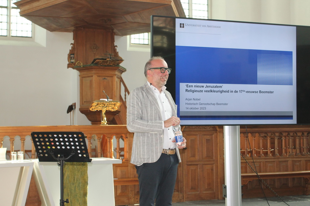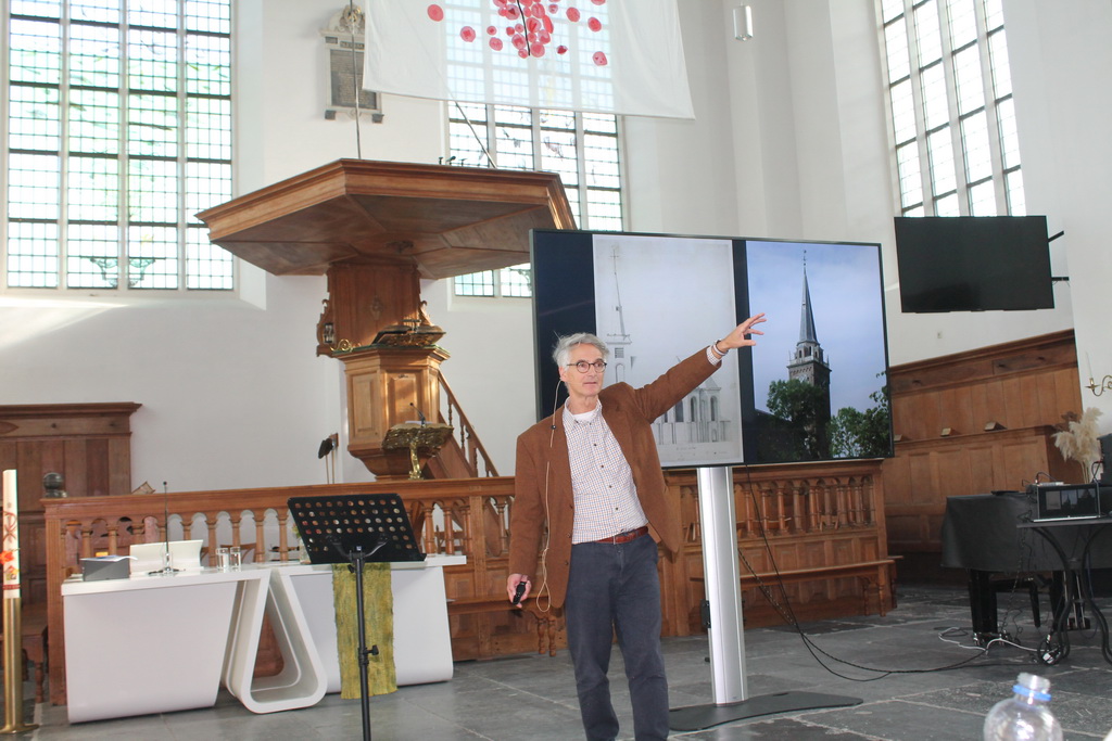 Samenvatting lezingen mini symposium Keyserkerk zaterdag 14 oktober 2023 Nieuws by sjaakmartens - 18 oktober 202318 oktober 2023 I. Arjen Nobel Docent Nederlandse geschiedenis aan de UvA Arjen Nobel plaatst zijn verhaal in de context van de opstand tegen de Spaanse overheersing. Later bekend als de Tachtig Jarige Oorlog. Bewoners in ons waterrijk gebied ten noorden van Amsterdam (het Noorderkwartier) waren door hun geïsoleerde leefomstandigheden wars van (overheids)bemoeienis. Nobel verklaart hun opstandige karakter vanuit deze eeuwenlange autonome leefomstandigheden. Het is vooral een burgeroorlog. Ook de bewoners in het Noorderkwartier worden in het voorjaar van 1575 geconfronteerd met een Spaanse invasie. Als er geruchten rondgaan over met de Spanjaarden heulende (katholieke) bewoners, richt de volkswoede zich vooral op deze bevolkingsgroepen. Er ontstaat sterk onderling wantrouwen en katholieken vormen in de regio omvangrijke enclaves. Ook op macroniveau zijn er spanningen. Met aanvankelijk meer een religieus karakter (is de mens vanaf de geboorte voorbestemd tot de hel of hemel?) maar al snel gekoppeld aan de strijd om de politieke macht. Beter bekend als de remonstranten en contraremonstranten. Rekkelijken en preciezen. Een strijd tussen (de aanhangers van) landsadvocaat van Oldenbarnevelt en stadhouder Maurits van Oranje. De Calvinistische Nederduitse Gereformeerde Kerk was in 1579 uitgeroepen tot de kerk van de Unie. Gedurende een betrekkelijk rustige periode aan het ‘front’ (12 jarig bestand; 1609-1621), wordt er ook weer driftig geïnvesteerd in eigen land. De droogmaking van het Beemstermeer is daar een voorbeeld van. Rijke kooplieden beleggen hun geld in (nieuwe) grond. Voor de productie van voedsel voor de omliggende explosief groeiende steden. Waar gewoond wordt, moet ook gekerkt kunnen worden. Dus wenden de bezitters van grond in de Beemster (Hoofdingelanden) zich tot de Classis in Edam. Het bevoegde gezag binnen de Gereformeerde Kerk. Ook op dit niveau signaleert Nobel een machtsstrijd. De Hoofdingelanden willen invloed op onder meer de benoeming van de nieuw aan te stellen predikant. Kortom: invloed op de verweven theologische en politieke ontwikkeling. Deze clash zorgt regelmatig voor een machtsvacuüm waar andersdenkenden gebruik van maken. Met name de Katholieke en Doopsgezinde bevolkingsgroepen. In tegenstelling tot de gereformeerde inwoners, die vanaf 1640 zelfs verplicht worden in de Midden te gaan kerken, hebben de katholieken verspreid door de polder meerdere plekken (schuilkerken) om hun bijeenkomsten te houden. Zij strijden met succes tegen het voornemen van het Kapittel om bewoners in Schuilkerken buiten de Beemster te laten kerken. Vooral rond de schuilkerk de Kerckhaen in Westbeemster vestigen zich gelovigen. De gereformeerden in de polder kijken met lede ogen naar de stabiele handhaving van het katholicisme. Op een enkele uitzondering na, een inval in een schuilkerk in 1657, blijft het bij woorden. Maar ook de Doopsgezinden spinnen garen bij de verdeeldheid. Zij stralen eenheid en rust uit en zijn voor veel gereformeerden een redelijk alternatief. II. Koen Ottenheym De Utrechtse professor Koen Ottenheym gaat in zijn betoog meer in op de bouwkundige betekenis van de nieuwe religie. De eerste protestantse diensten worden gehouden in van oorsprong kaal gestripte katholieke kerken. Maar daar waar sprake is van nieuwbouw, en dus ook in onze nieuwe polder, vraagt een andere liturgie ook een ander interieuropstelling. En daarmee een andere kerkbouw. Voor de bouw van de kerk in Middenbeemster wordt gekozen voor een rechthoekige variant. Een proper langwerpige kerk met een kleine toren(spits). Eerder in de tijd waren het vooral achthoekige kerken. Zoals die in Willemstad of rond van vorm. De Hoofd Ingelanden komen veelal uit Amsterdam of andere steden en willen in hun nieuwe gebied een kerk van allure. Passend in de nieuwe omgeving. Dus vragen zij een bekend Amsterdams bouwteam om de opdracht te klaren. Een bouwteam welke ook verantwoordelijk is voor de nieuwe kerken en andere bouwwerken in de nieuwbouwwijken van de hoofdstad en elders in het land. Te weten Hendrik de Keyser (bouwmeester en beeldhouwer), Cornelis Danckertsz de Ry (meester metselaar) en meester timmerman Jan Staets. De eerste heeft ongetwijfeld het artistieke ontwerp voor zijn rekening genomen, maar de anderen mogen in het verhaal niet ontbreken. Koen oppert in dit verband gekscherend de naam te veranderen in ‘de Keyserkerk en Co’. De essentie van het ontwerp is dat gekozen wordt voor het kopiëren van stedelijke stijlkenmerken (Renaissancestijl) maar dan passend bij de landelijke allure van de droogmakerij. Zeg maar: de Westerkerk maar dan op dorpsformaat. Het schip is bouwkundig te onderscheiden in twee vierkanten. Met in het centrum de plek van de liturgie. De 3e spreker van de middag Herman Wesselink zal daar dieper op in gaan. Otenheym neemt ons mee naar een door de Keyser ontworpen beeld bij het graf van Willen van Oranje in de oude kerk in Delft. Het beeld toont in de linkerhand een miniatuur welke opvallende overeenkomst heeft met onze kerk. Dezelfde architectonische uitgangspunten gelden ook voor de door architect Pieter Post , tevens architect van buitenplaats Vredenburg in de Beemster, ontworpen opbouw van de torenspits na het midden van de 17e eeuw. Post weet met de balustrade een gepaste overgang te creëren tussen de robuuste vierkante toren en de ronde spits. De kenmerkende bogen zijn architectonisch duidelijk een handtekening van Post. III. Herman Wesselink Tenslotte de architectuurhistoricus Herman Wesselink. Hij constateert, met de andere inleiders, dat aan de buitenkant de kerk grotendeels onveranderd is gebleven in de vier eeuwen. In tegenstelling tot het interieur. Deze is meerdere malen grondig veranderd. Lang niet altijd onomstreden. Wesselink toont zijn gehoor een aantal historische dorpsgezichten van de Buurt. Waarbij het opvalt dat de weergave van de kerk lang niet 