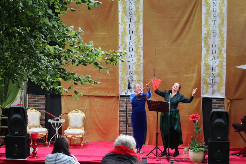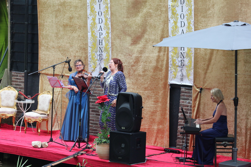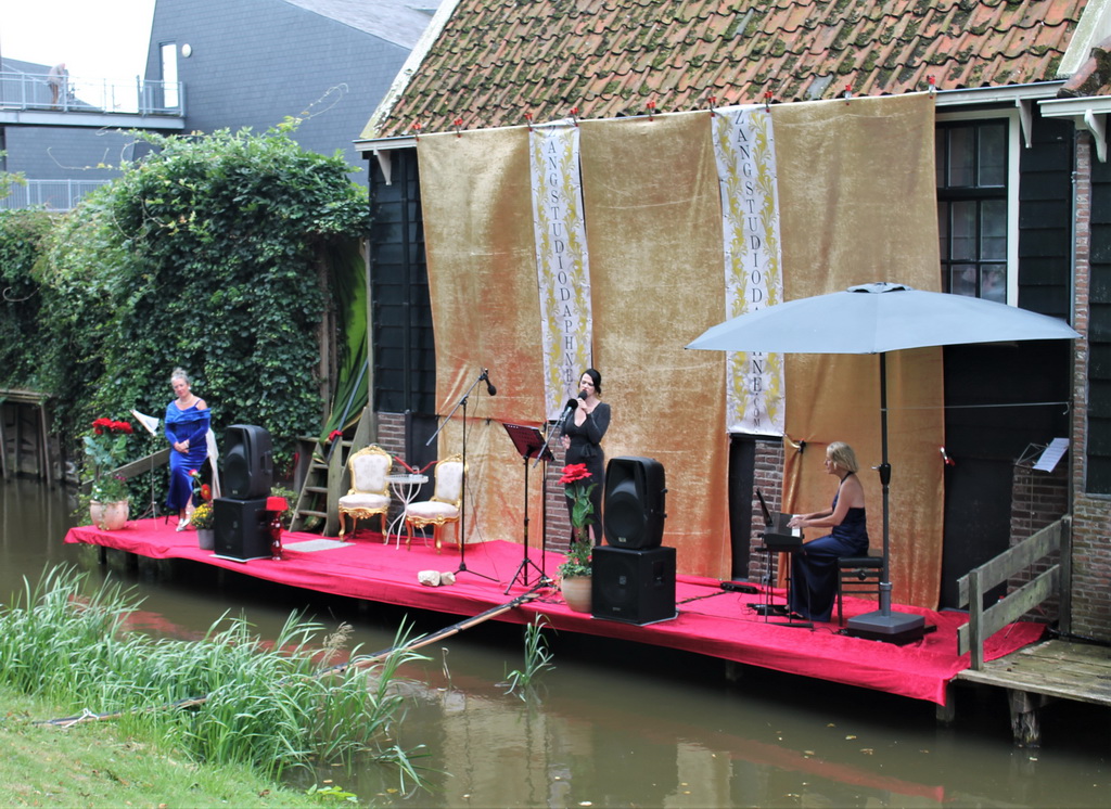 Sfeervol eerste vlonderconcert Middenbeemster Nieuws by sjaakmartens - 30 augustus 202130 augustus 2021 Een sfeertekening De culturele sector heeft het zwaar. Nog steeds gelden lastige beperkingen waar het openbare fysieke uitvoeringen betreft. En dan werkt het weer deze zomer ook niet echt mee. Het getuigt van een enorme portie doorzettingsvermogen om dan toch je nek uit te steken door een buitenconcert te organiseren. Toegegeven, het is een thuiswedstrijd. Letterlijk, want op de vlonder achter het huis en de zangstudio van Daphne Bečka in het Kerkenbuurtje in Middenbeemster. Daar is de zangpedagoge en mezzosopraan enkele jaren geleden komen wonen. In de nabijheid van haar zuster Inge. Na een verblijf van dertig jaar in het buitenland. Op veilige afstand van de uitvoerenden en van elkaar zat het publiek. Op de terp van de Keyserkerk. Gouden vlaggetjes in het gras markeren de ziplekken. Wie wilde kon vooraf een box met overheerlijke versnaperingen bestellen bij ‘Bij Moeders in de Kosterij’. Met deze opzet ontstond een ruimtelijke edoch intieme sfeer. Bezoekers hadden zelf een kleedje of stoel meegenomen. Door het hoogteverschil was er van verschillende kanten goed zicht op het prachtig aangekleed ‘podium’. Met doeken, een salontafeltje met twee stoelen en een heuse trap waar de uitvoerenden, allen schitterend ‘in gala’ gekleed, opkwamen. Heel veel werk was daaraan voorafgegaan. Allereerst al om er voor te zorgen dat het geluid, toch een essentieel onderdeel, goed functioneerde. Tussen de buitjes door was al voor het weekend druk gerepeteerd. Met hindernissen. Op zondagochtend werden de decordoeken opgehangen. Geen eenvoudige klus. Het was weliswaar droog maar er stond een stevige wind. Die wind stond er tijdens het concert ook. Maar daar hadden de bezoekers rekening mee gehouden. Want desgewenst kon een meegenomen plaid extra warmte bieden. Het was aan Inge om het concert te presenteren. Ze deed dat als echte diva op licht komische wijze. Waar nodig ondersteunde ze de theatrale acts. Bijvoorbeeld om haar zuster te ondersteunen bij het binnenhalen van de ‘Franz Schubert forel’. Uit de kerksloot, nota bene! De kracht van het optreden zat ook in de variatie van hetgeen ten gehore werd gebracht. Er werd solo maar ook in duet gezongen en gespeeld. Klassiek maar ook modern. Van Bizet tot Parson James en van Adele tot Rachmaninov. Met verrassende combinaties. Daphne Bečka vormde daarin zonder twijfel de hoofdrol. Met gedurende de hele middag ondersteuning op de piano van Carla Braan. Maar ook Sonja Kuusisto, dochter van Daphne, (zang) en Liesbeth Molenaar (viool) verzorgden hartverwarmende optredens. Geluid (Barbara van Veen) en performance waren perfect. Mijn indruk was dat een ieder deze middag genoot van de kwaliteit en de sfeer. Burgemeester Karen Heerschop sprak tijdens het overhandigen van de bloemen van de start van een traditie. Deze uitnodiging werd ruimhartig ondersteund door het publiek en, minstens zo belangrijk, door de uitvoerenden. Tot volgend jaar en dan met een (nog) vollere terp. Geert Dit delen: Klik om te delen op X (Wordt in een nieuw venster geopend) X Klik om te delen op Facebook (Wordt in een nieuw venster geopend) Facebook Gerelateerd
